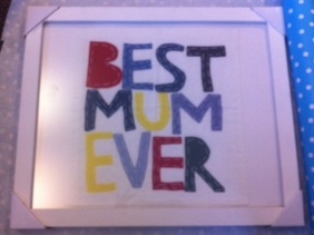 Fabric pictures...my new favourite past-time. They are fun to make (you just need felt for the lettering, linen for the background and your bog-standard needle n thread) and, I think, they make great personalized presents. Tracey Emin eat your heart out! The first one I made was for my lovely Mum on Mothers' Day.
